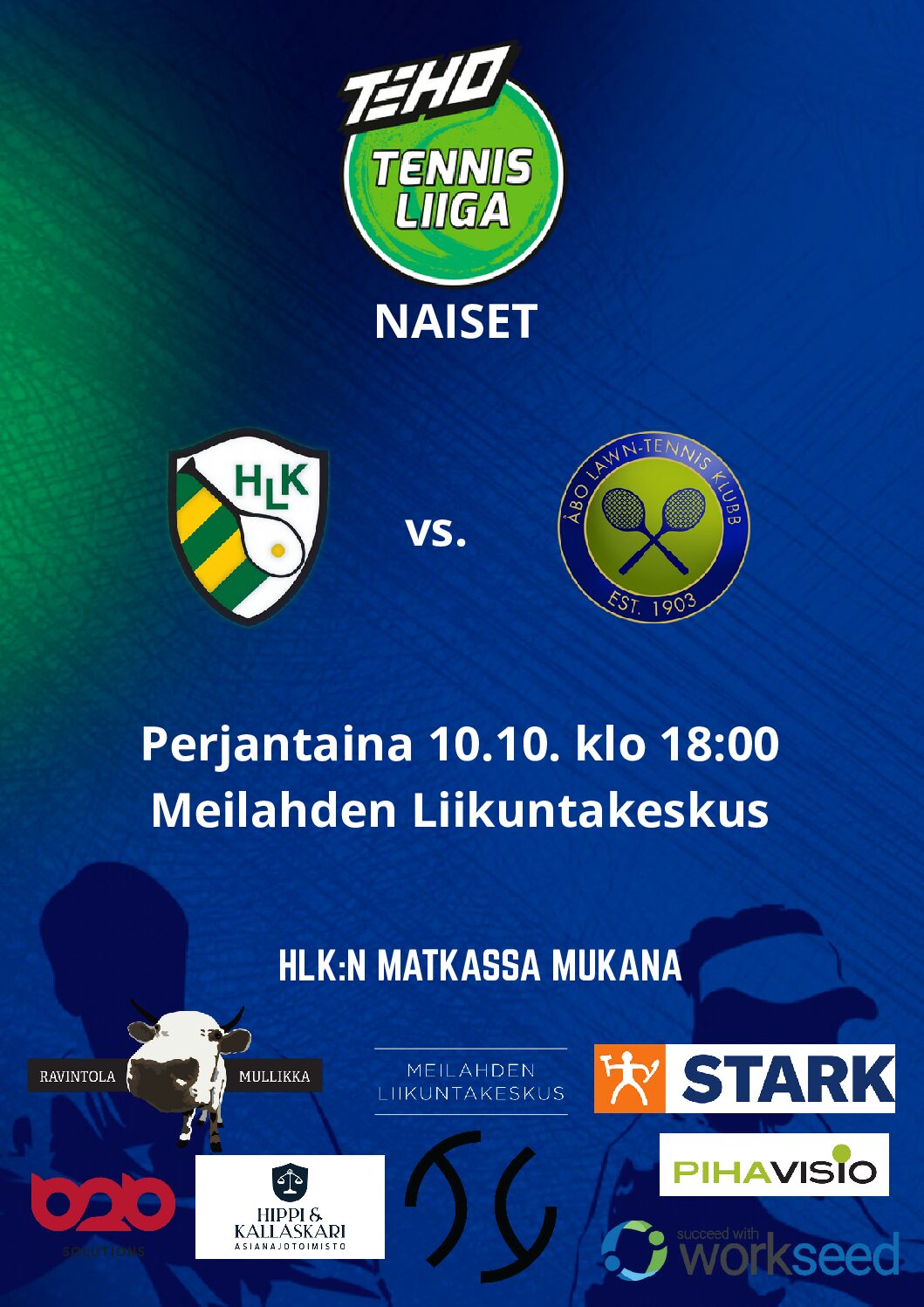 HLK:n Miesten ja Naisten edustusjoukkueet pelaavat kaudella 2025 – 2026 Teho Tennisliigassa.HLK:n kotiottelut ovat saaneet paljon kehuja tapahtumina, joten laittakaa pelipäivät muistiin ja saapukaa Meilahteen seuraamaan huipputennistä sekä nauttimaan tunnelmasta. HLK:n tennisliigasivutwww.hlk.fi/tennisliiga Tennisliiton Tennisliigasivutwww.tennis.fi/tennisliiga